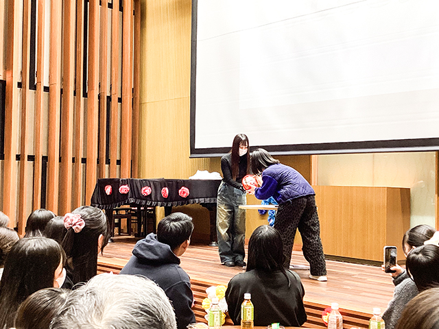 国家試験を目前に控えた3年生も、このひとときは少し緊張が和らぎ、リラックスした表情で会を楽しんでいる様子が見られました。