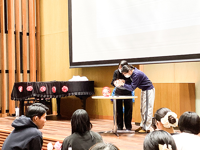 毎年この会では、国家試験合格を祈念して、だるまの目入れを行っています。