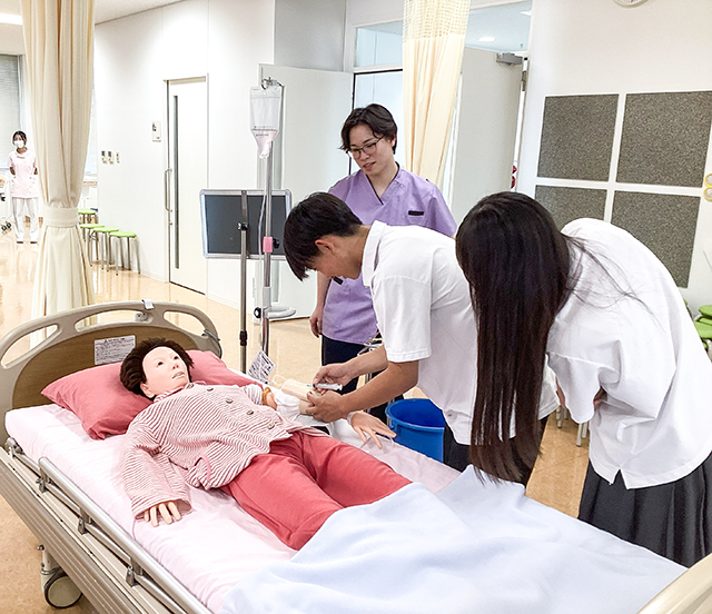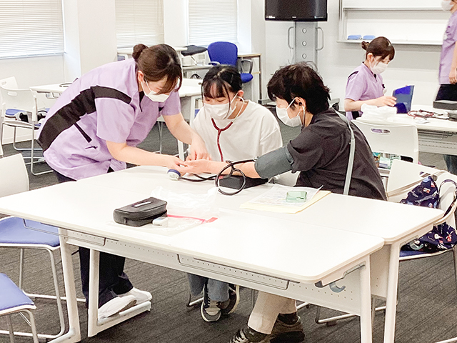 | 看護技術体験(血圧測定・新生児の入浴など各種看護技術) 在校生と看護技術を是非体験してみてください。実技における貴重なアドバイスが得られます。 |