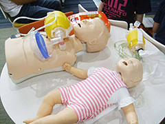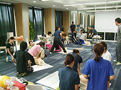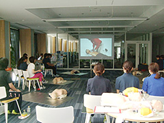 人が急に倒れたり窒息を起こしたりなど、BLSが必要な場面に遭遇したときに、しっかり実践できるよう、成人や小児の一次救命処置のほか、気道異物の除去、AEDの使用について、熟練したインストラクターの方々から7時間にわたって丁寧な指導を受けました。